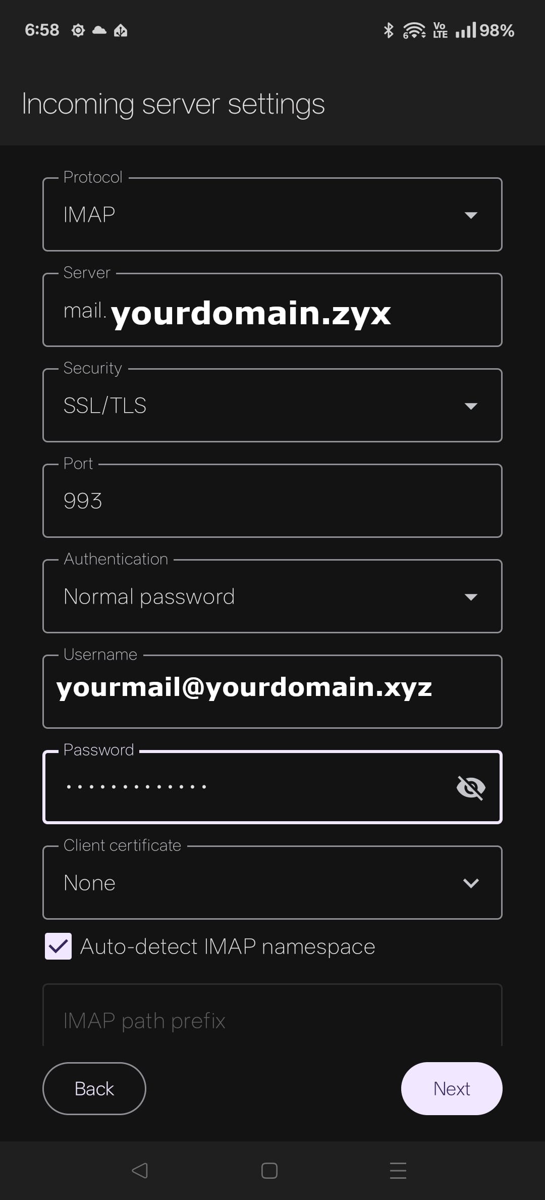 K9Mail/Thunderbird is a great mobile and desktop client. To set up IMAP on K9Mail on mobile follow the below steps